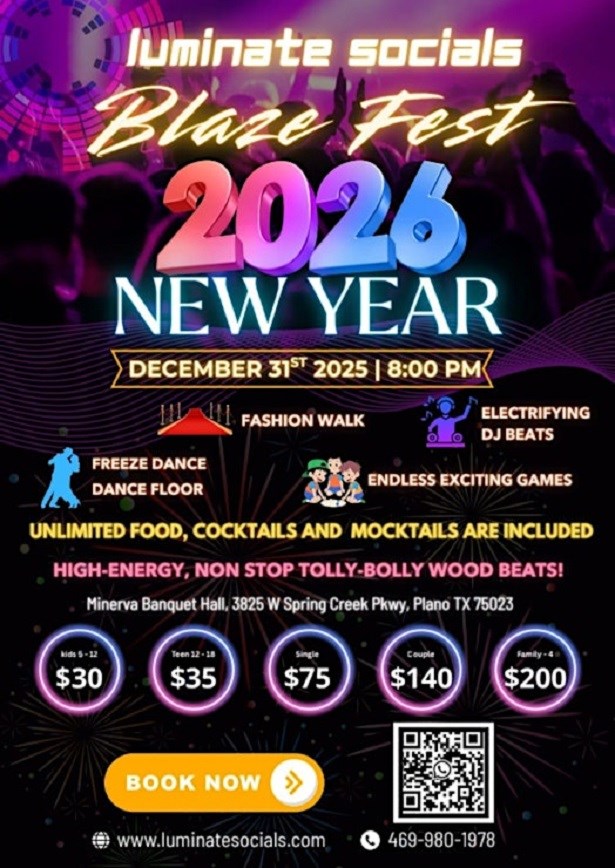 FeaturedAdNew year Bash 2026 Dec 31, 8:00 PM(CST) Elegance Ballroom Event Centre, 8740 Ohio Drive A1, Plano, TX - 75024 Ticket range: $40 - $75 Buy Tickets FeaturedAdThe Ultimate 2026 NYE Party In Dallas Dec 31, 8:00 PM(CST) Grand Center, 300 Chisholm Pl, Plano, TX - 75075 Ticket range: $30 - $200 Buy Tickets