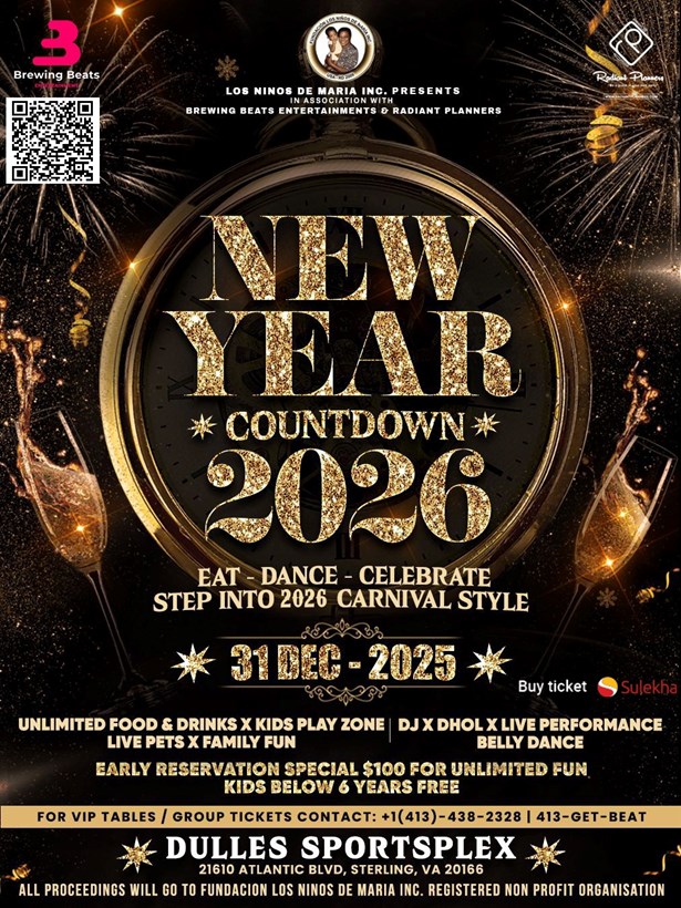 Year Countdown 2026 at Dulles Sportsplex, VA – unlimited food, drinks, DJ,