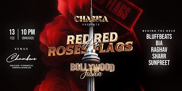 HomeToronto Metro Area Events Toronto, ON Events CHASKA Presents: Red Roses and Red Flags - Bollywood Fusion on 13th Feb Valentines dayNight PartyBollywood PartyDanceMusicHindi CHASKA Presents: Red Roses and Red Flags - Bollywood Fusion on 13th Feb Fri, Feb 13 at 10:00 PM(EST) Chambers, 17 Street, Toronto, ON M5C 2E3 Shortlist Add to Calendar Share Report Comments