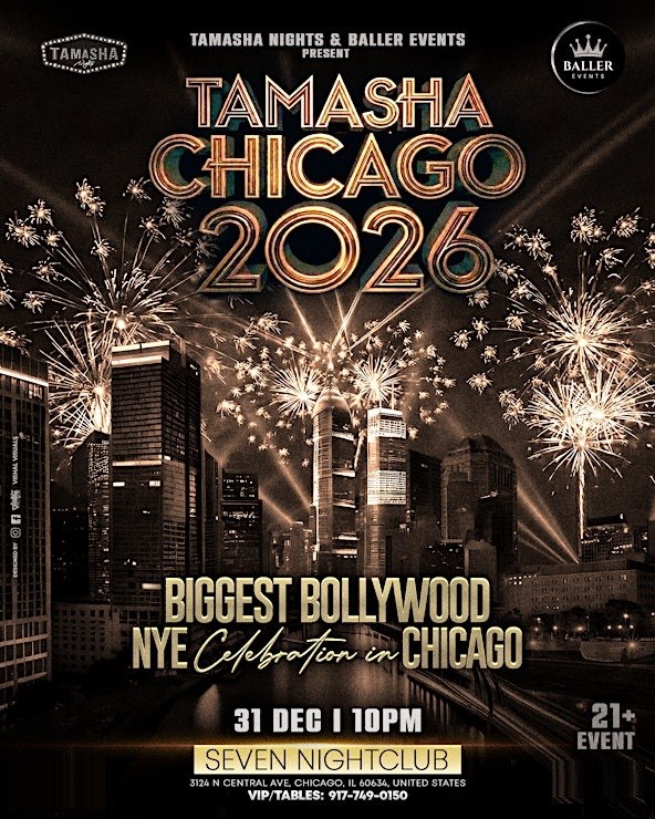 After a year of unforgettable events in Chicago, Tamasha Nights & Baller Events bring its iconic energy to the Windy City — for a bold, vibrant, high-voltage Bollywood countdown party to welcome 2026 in true Chicago style!