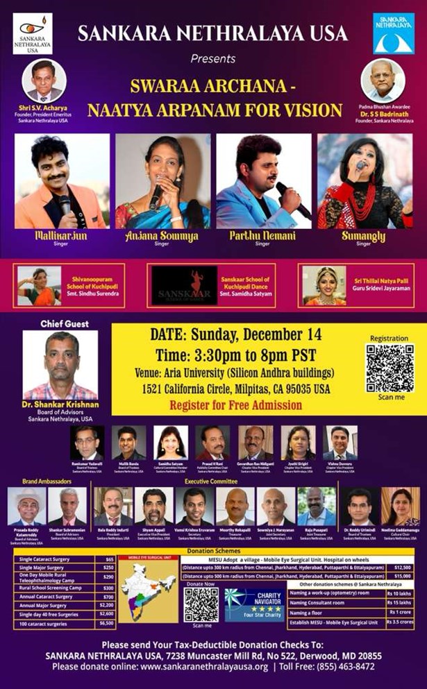 Dear Friends and Family, We warmly invite you to join a Bay Area event for an evening of *Swaraa Archana and Naatya Arpanam* for *VISION*.