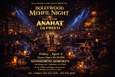 FeaturedAdDESI FIESTA BOLLYWOOD NIGHT TEQUILA N TACOS AT PISCATAWAY NJ May 01, 9:30 PM(EST) Tequila N Tacos, 560 Stelton Road, Piscataway, NJ - 08854 Ticket range: $15 - $30 Buy Tickets