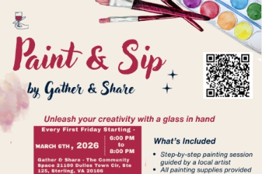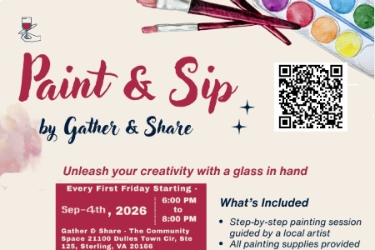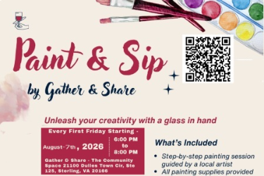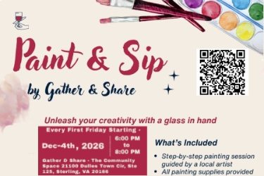 FeaturedAdPaint & Sip by Gather & Share Feb 06, 6:00 PM(EST) Gather & Share, 21100 Dulles Town Circle, Sterling, VA - 20166 Ticket range: $50 Buy Tickets FeaturedAdValentine's Day Date Night & Couple Dance in Sterling,VA Feb 14, 7:00 PM(EST) AllGoRhythms Gastro Bar, 21035 Dulles Town Circle, Sterling, VA - 20166 Ticket range: $19.99 - $289.99 Buy Tickets